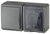 ЭРА Блок розетка с выключателем Эксперт 11-7402-03 двойной IP54 16A-10AX-250В ОУ серый
