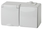ЭРА Блок две розетки + выключатель Эксперт 11-7404-03 двойной IP54 16A-10AX-250В ОУ серый