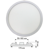 Ecola LED downlight встраив.1022 Круглый даунлайт с креплением под любое отверстие (50-140mm) 15W 220V 4200K 175x20