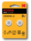 Батарейки Kodak CR2016-2BL MAX Lithium (60/240/43200)