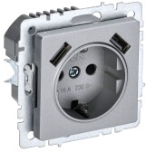 IEK BRITE BASE Алюминий Розетка с з/к/ш 16А с USB A+A 2,1А РЮш10-1-БрА