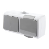 ЭРА Intro Выключатель Atlantic 5-104-03 двойной, 10А-250В, IP54, открытой установки, серый