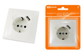 TDM Розетка 2П+З с защ. шт. и крышкой 16А 250В IP44 белая "Таймыр" (пром. упак., бакелит. основание).
