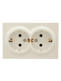 LETO Розетка двойная с/з закрытый корпус ПБТ крем (10шт/120шт)