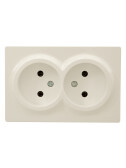 LETO Выключатель двойной и розетка с/з, крем горизонталь (10шт/120шт)