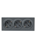 LETO Розетка тройная с/з закрытый корпус ПБТ графит (7шт/84шт)