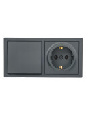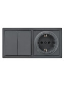 LETO Выключатель двойной и розетка с/з,графит горизонталь (10шт/120шт)