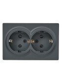 LETO Розетка двойная с/з закрытый корпус ПБТ графит (10шт/120шт)