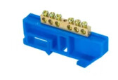 Шина N (ноль) комбинир изолятор на DIN-рейку 6x9мм 10 отверстий латунь синий Omnyx (20/500)