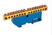 Omnyx Шина PE (земля) изолятор на DIN-рейку 6x9мм 14 отверстий латунь желтый (10/20)