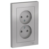 Schneider-Electric AtlasDesign Алюминий Розетка б/з двойная, со шторками,16А, (в сборе с рамкой)